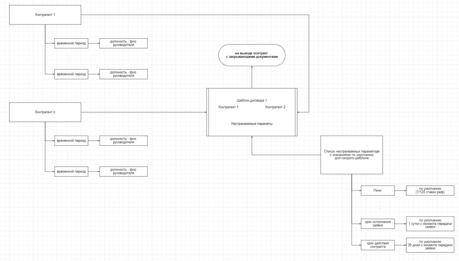 Нужно сделать возможность создания в 1С договоров с комплектом закрывающих документов. Во вложении схема.