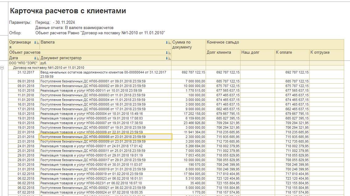Требуется разработать отчет по расчету пеней по каждой реализации с учетом данных в дополнительных реквизитах в Договореза весь период действия договора (по данным в базе 1С ЕРП),