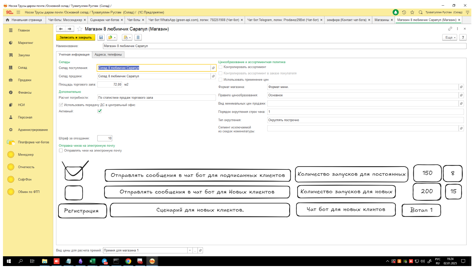 Изменить механизм отправки сообщений клиентам в чат-боте, чтобы сообщения приходили не только зарегистрированным в боте, но и всем клиентам с WhatsApp. Сообщения должны отправляться в соответствии с заданным сценарием.