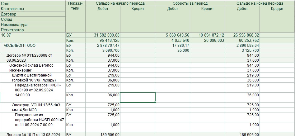 Для проверки: суммы и количество должны совпадать с ОСВ по 10.07 за выбранный период.