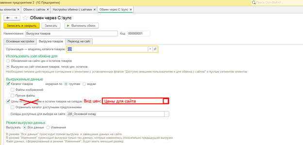 Типовой функционал Обмен с сайтом работает через функционал Соглашений.