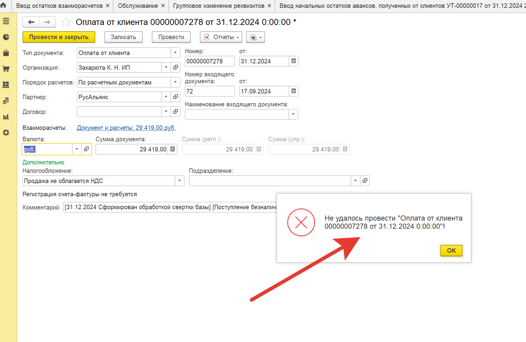 Помочь в 1с УТ провести первичный документ не смотря на запрет в связи с тем что он...