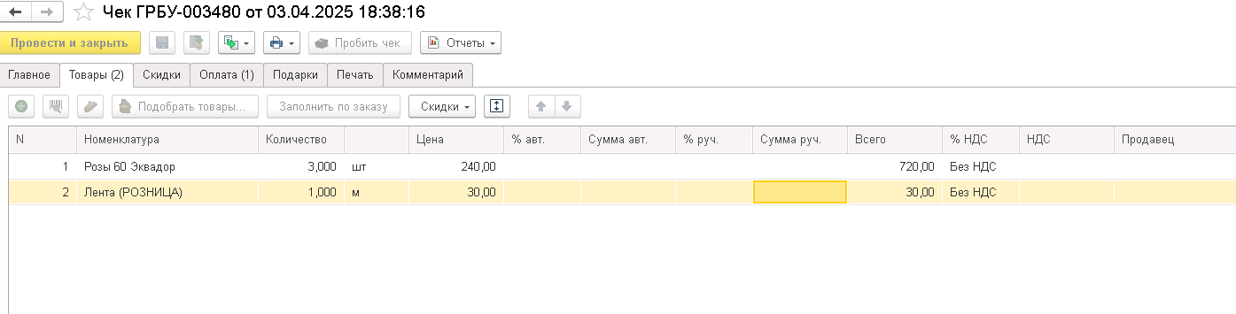 Месяц пробивались чеки по двум организациям без НДС, а должны были с 5%. В Целом в базах 1с поправили везде этот момент, вот кроме документов "Чек ККМ"(а он оказывается участвует в обмене с УТ для формирования ОтчОРознПродаже ОтчОРознВозвратах). В общем нужно во всех чеках по отбору(организация и дата интервал) поменять на НДС 5%, НО есть один нюанс, я пробовал групповой обработкой поменять НДС на 5%, но "сумма НДС" в строке товара пустая остаётся всё равно. Прилагаю 2 скриншота, один чек нормальный, второй вот косячный БЕЗ НДС.