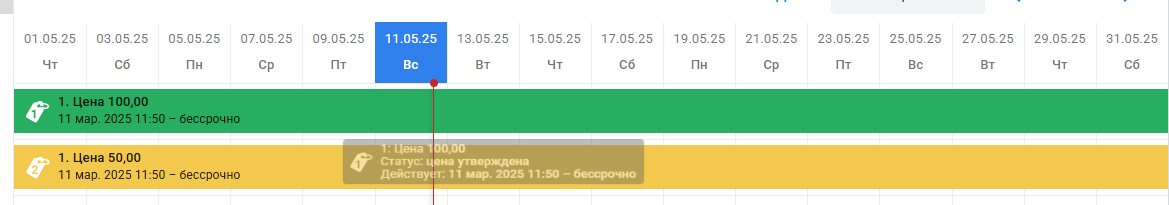 Для второй цены необходимо указывать время начала её действия и время окончания