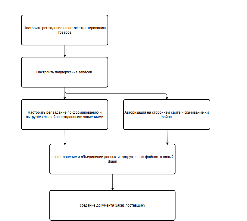 Нужен механизм по отслеживанию товаров, которые необходимо заказать у поставщика для поддержания оптимального запаса, с учетом продаж товаров на МП. Задача из нескольких этапов (см. краткую блок схему).