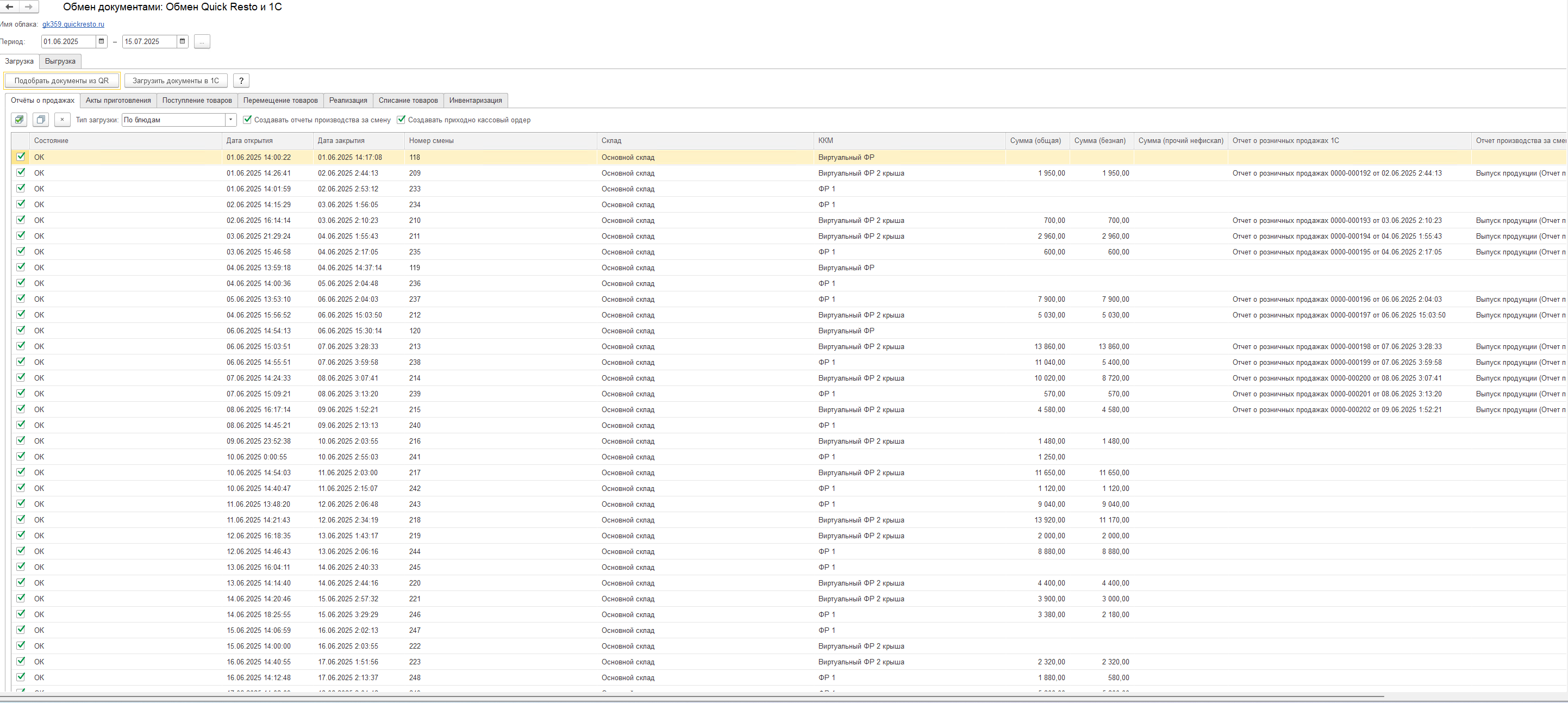 1С + Quickresto, перестали формироваться отчеты, нужно починить