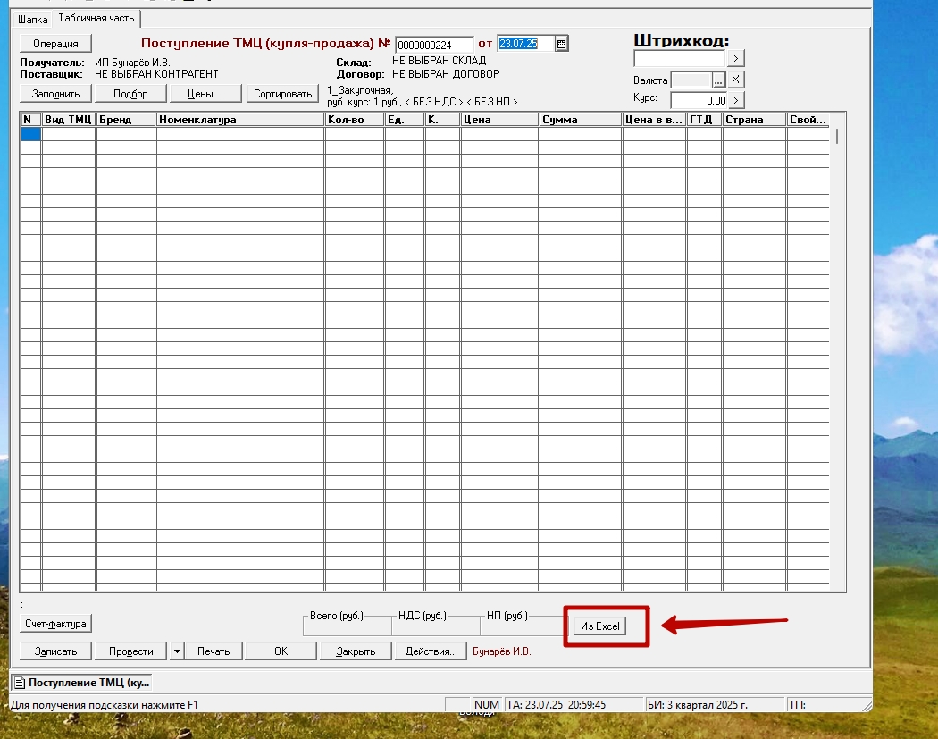 Здравствуйте, Всем! Требуется загрузка накладной из Excel в 1с7.