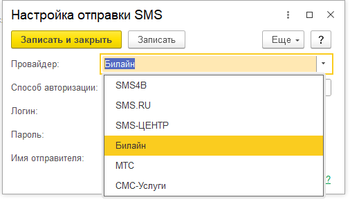 Требуется добавить оператора Ростелеком для отправки смс из Розница 8. Магазин одежды и обуви, редакция 3.0.