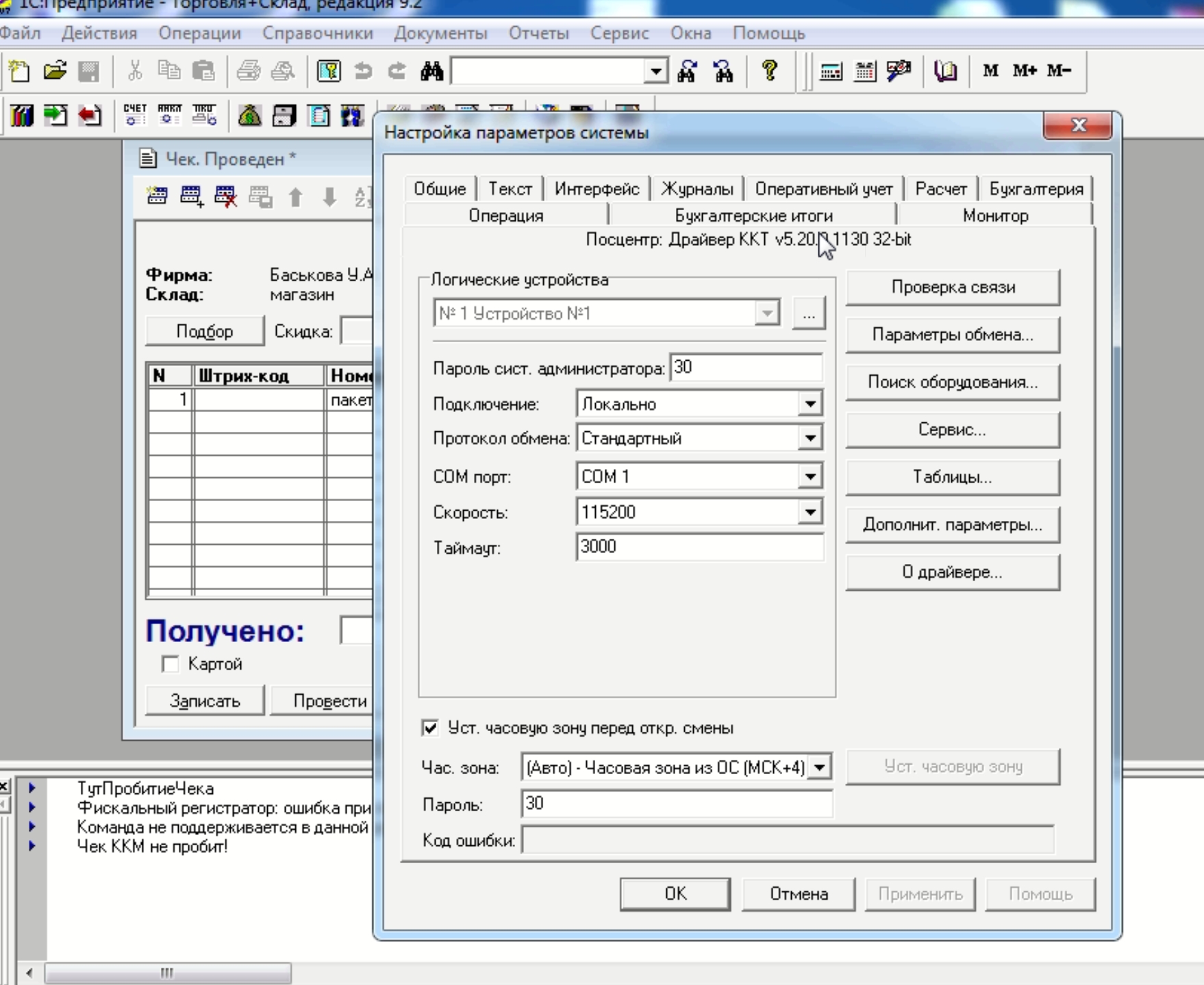 смену открывает и закрывает, драйвер самый новый подключил, все уже в 1С. на фото видно, надо изменить обработку. как пишут там несколько строк добавить.