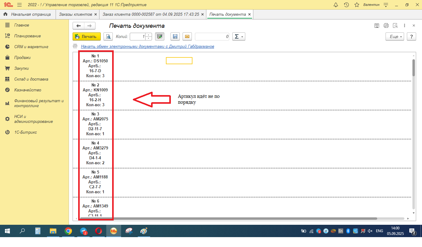 Также при сборке заказов, хотелось бы, чтобы список бирок(наклеек), выводились в алфавитном порядке по артикулу или/и по ячейкам.