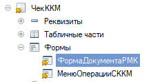 Изменения внесены в форму "МенюРперацииСККМ" документа "ЧекККМ", а также в кнопку "Операции с ККМ" формы "ФормаДокументаРМК" документа "ЧекККМ".