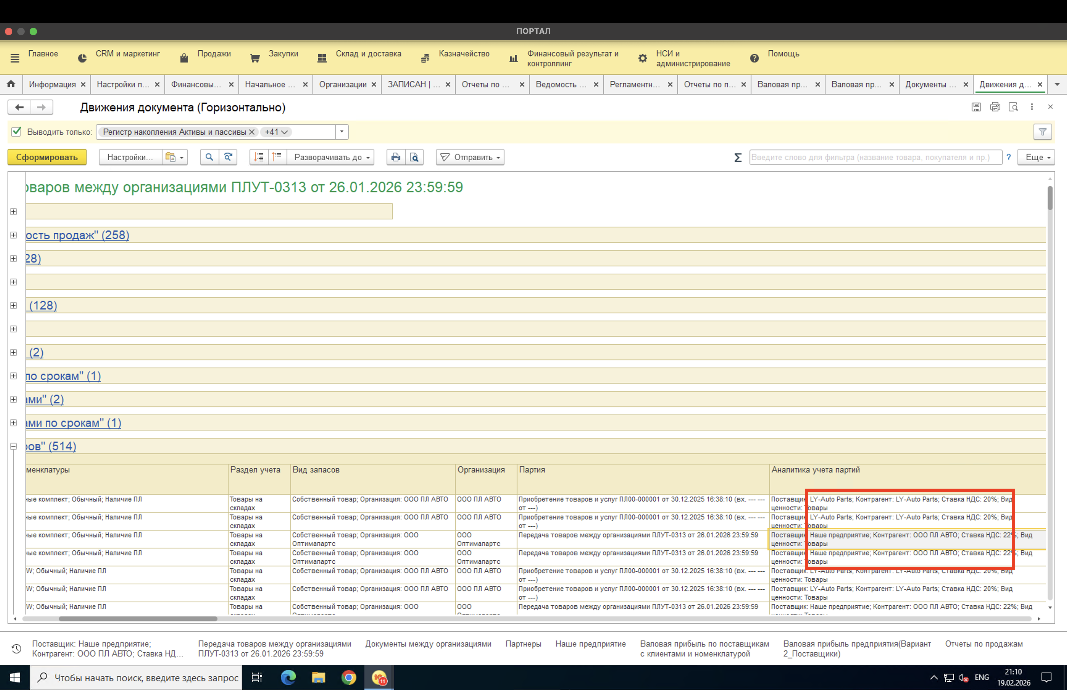 Цепочка передач учитывается: если товар прошёл Орг1 ; Орг2 ; Орг3, первичный поставщик берётся из самой первой партии.