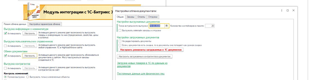 Нужно программно сдвигать дату в настройках обмена с сайтом на неделю назад регламентным заданием(1с-битрикс встроен в конфигурацию). Подробнее на скриншоте.