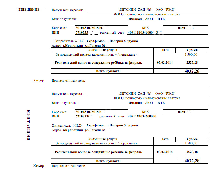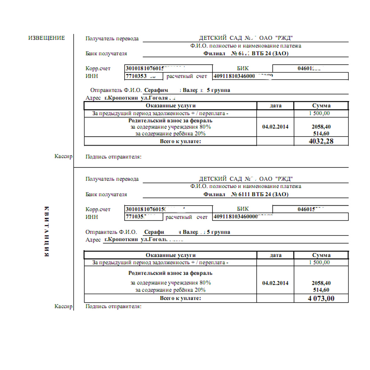 Обе квитанции "Родительский взнос" и "100%-ники" одной формы.