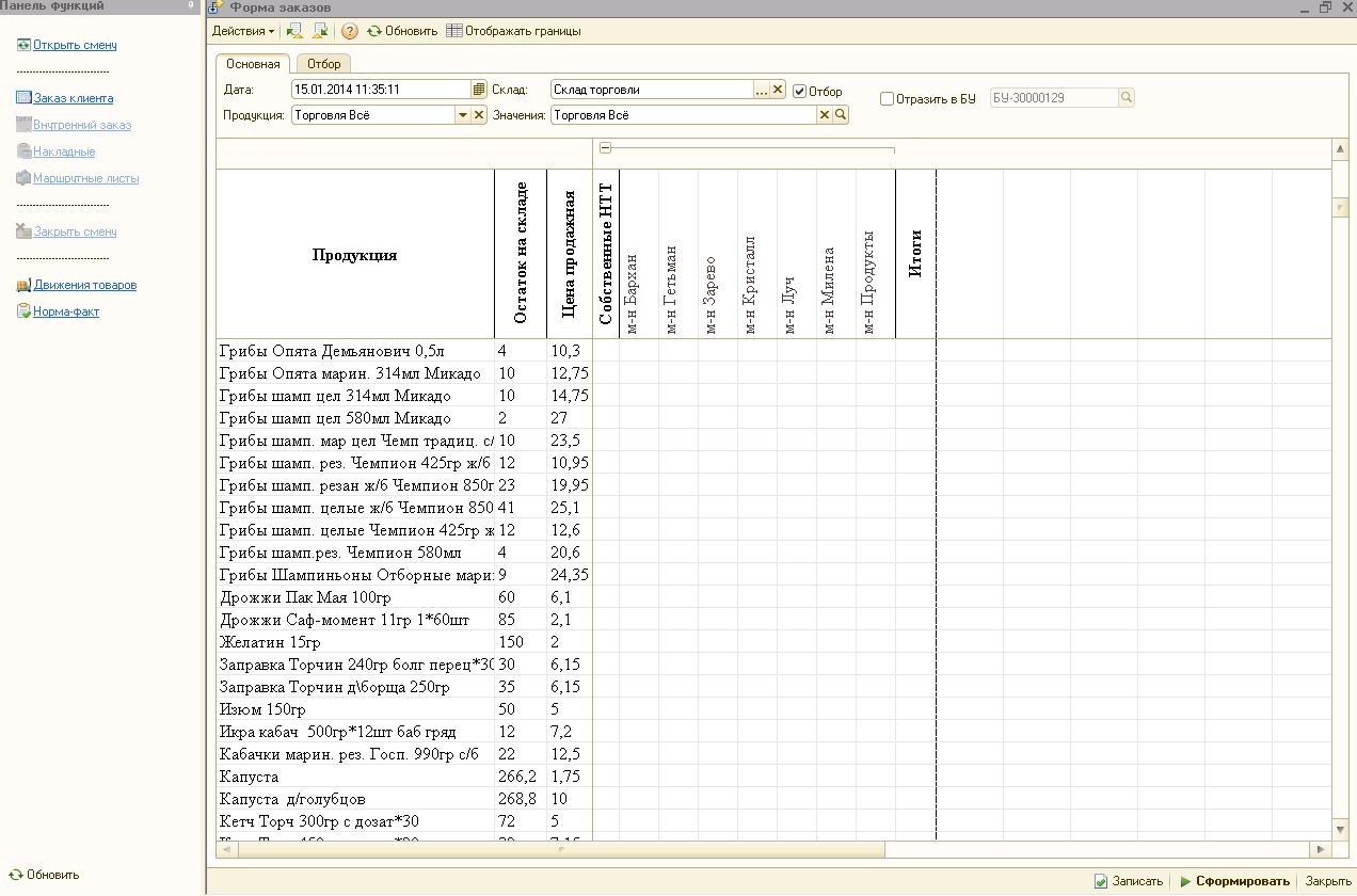 • После чего собирался заказ клиента,(внутренний заказ для накладных на перемещения для НТТ) прочитав каждого информация сохранялась путем нажатии кнопки записать