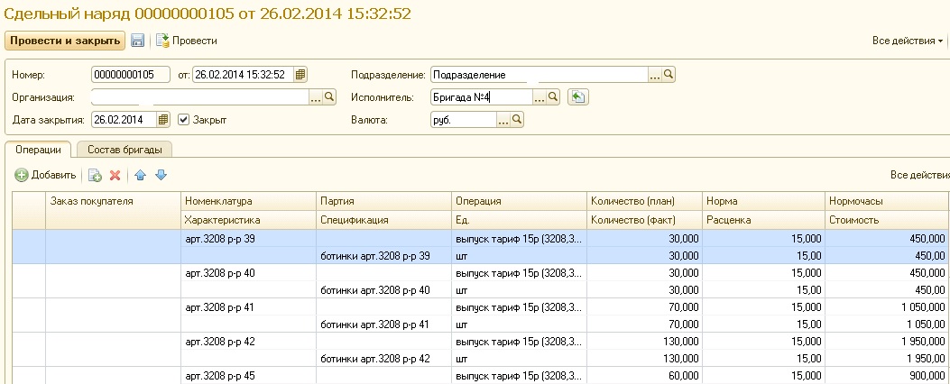 Документ "Сдельный наряд".