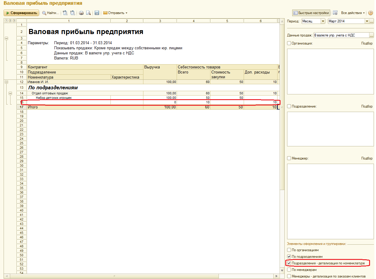 Образец формирования отчета валовая прибыль представлен в файле "Валовая прибыль с бонусами (образец)"