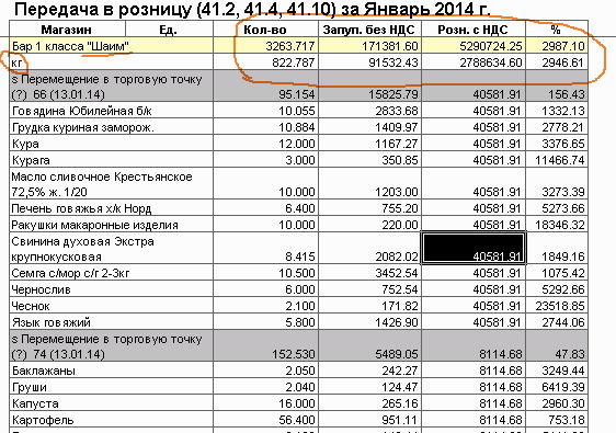 Колонки: Магазин Ед. Кол-во Запуп. без НДС Розн. с НДС %