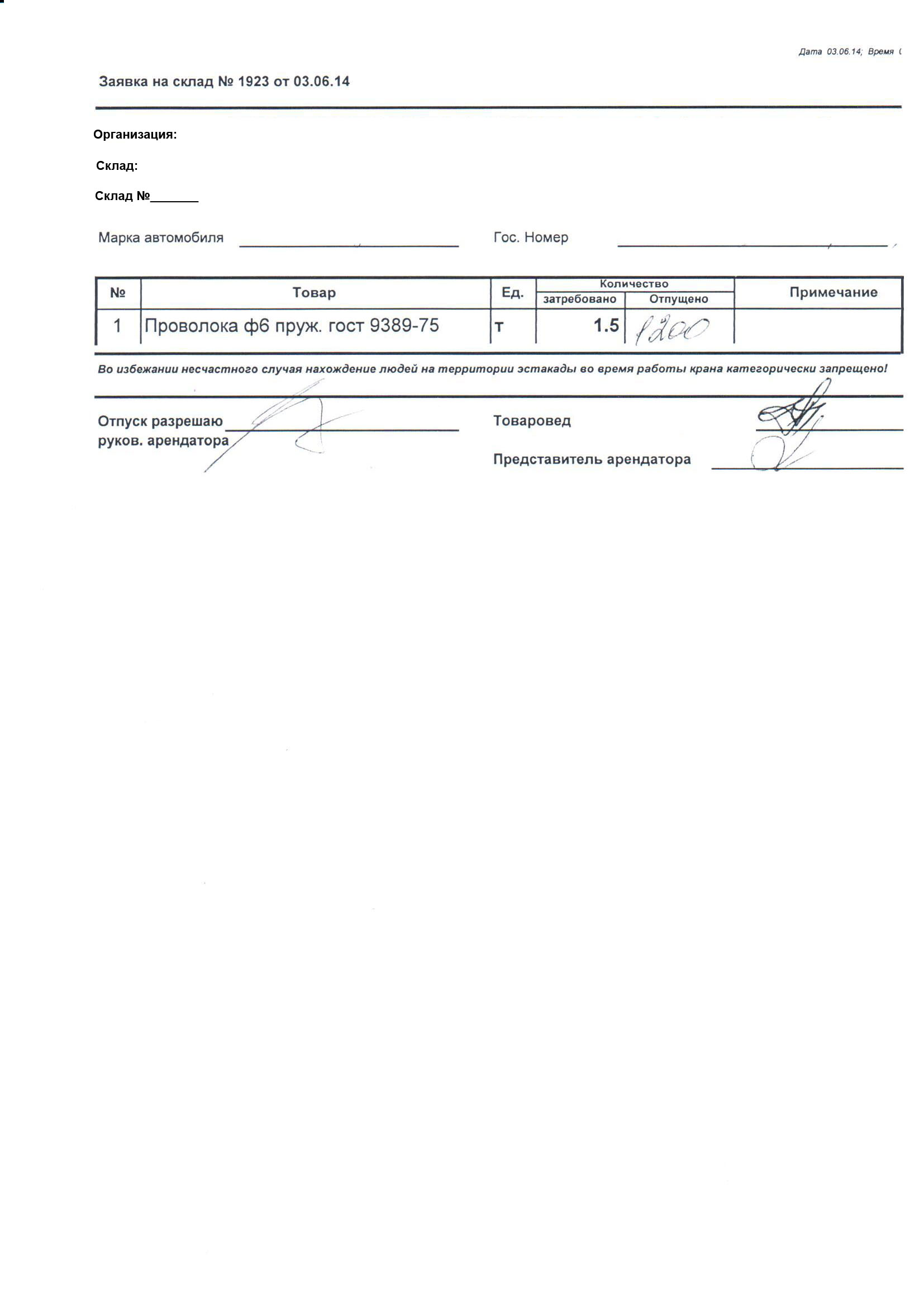"Заявка на склад" привязка склад>списание>