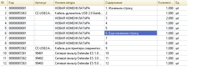После этого редактируем какую-то строку, к примеру, 1-ю.