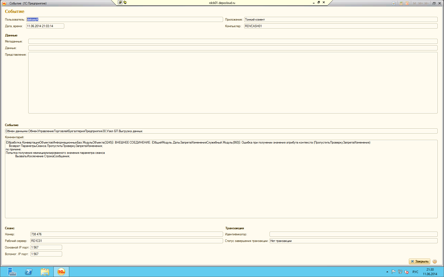 При обмене данными между УТ 11.1.5.8 и БП 3.0.33.19 возникает ошибка. До этого все работало нормально.